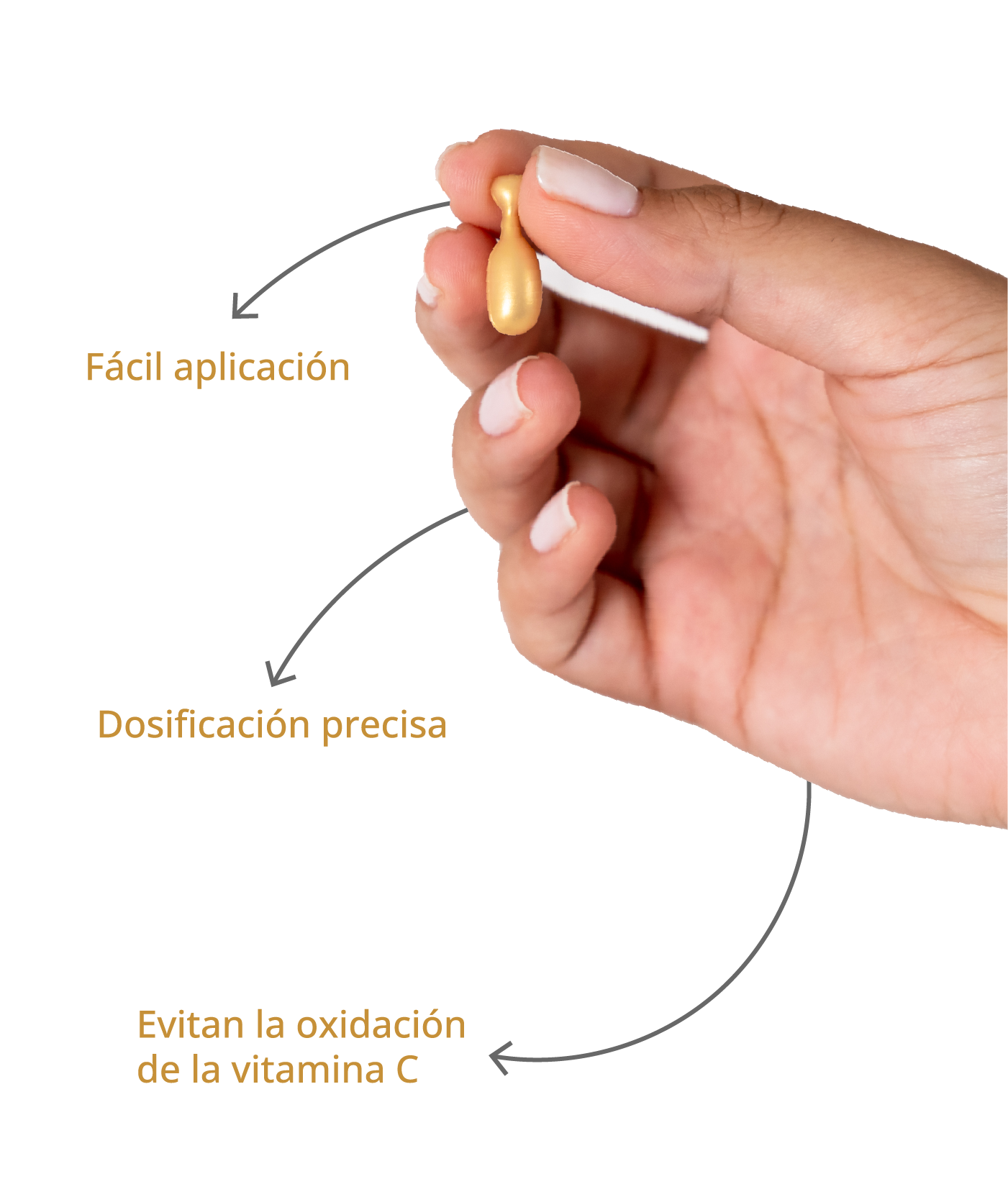 Las cápsulas monodosis de Vitamina C conservan intactas sus propiedades permitiendo obtener todos sus beneficios antioxidantes y devolviéndole a tu piel su tono y luminosidad.